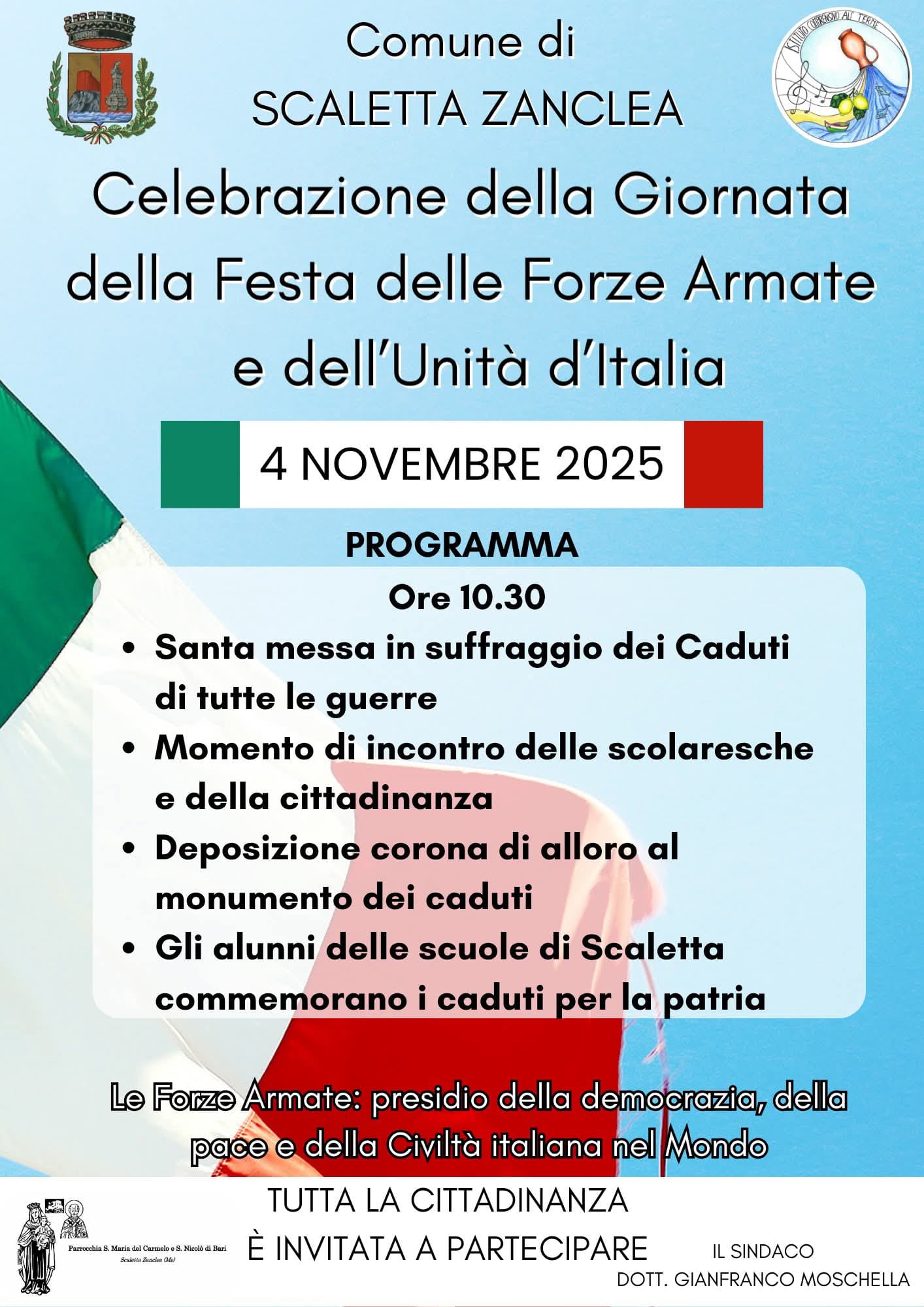 Celebrazione della giornata della Festa delle Forze Armate e dell'Unità d'Italia - Piazza Municipio, 4 novembre 2025 ore 10,30