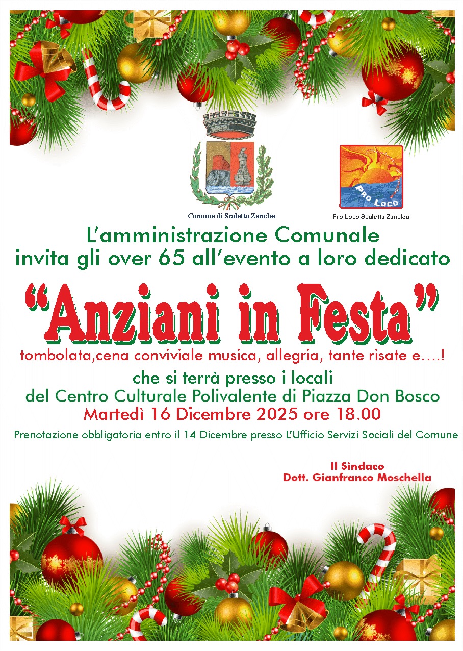 Avviso “anziani in festa” martedi 16 dicembre 2025 ore 18:00